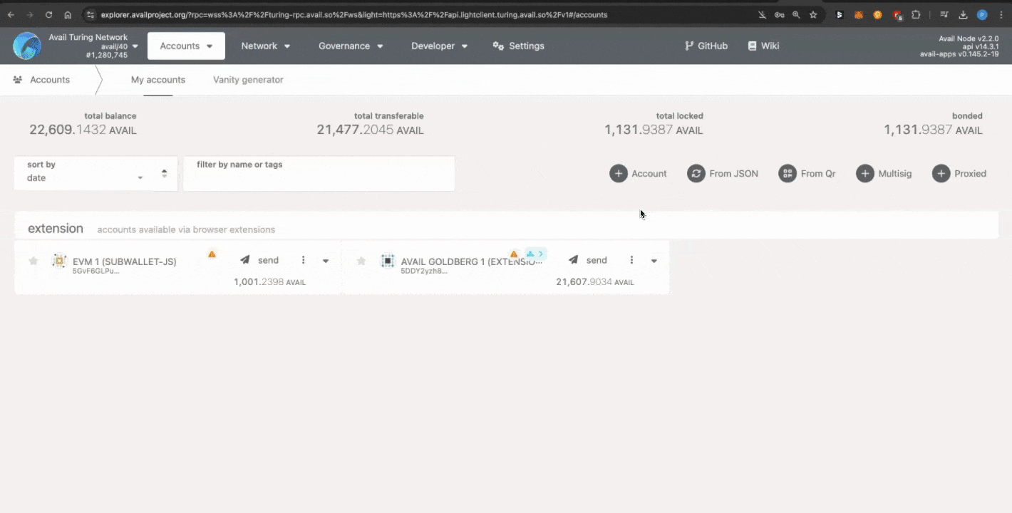 The AvailApps explorer can be used to add or import Avail accounts into the explorer.