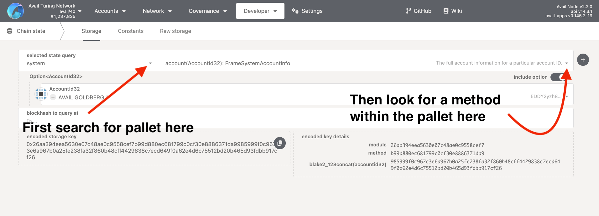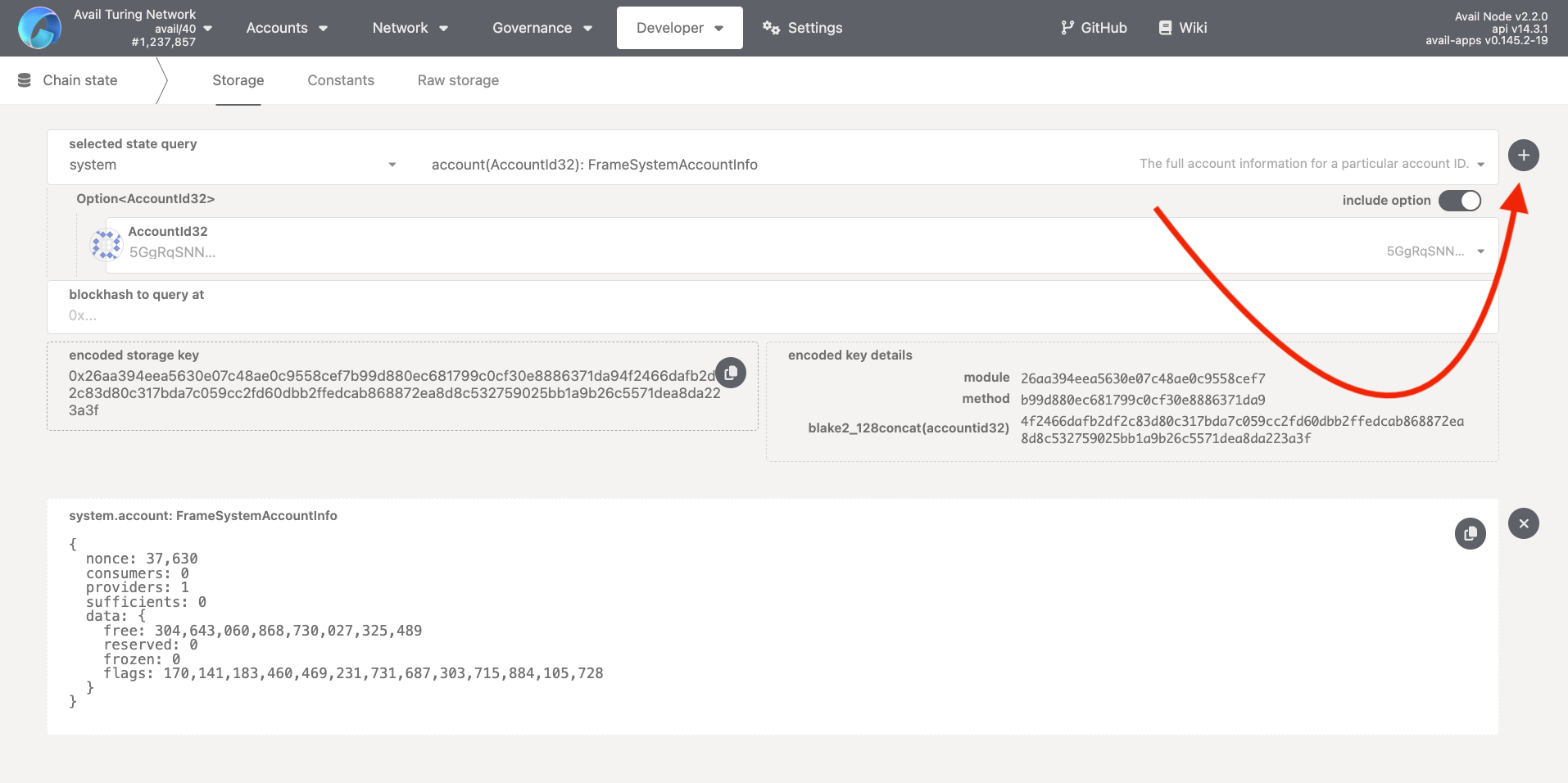 1. And that’s it. You just used the AvailApps explorer to query the balance of an account on the Avail network. You can query other methods in a similar way.