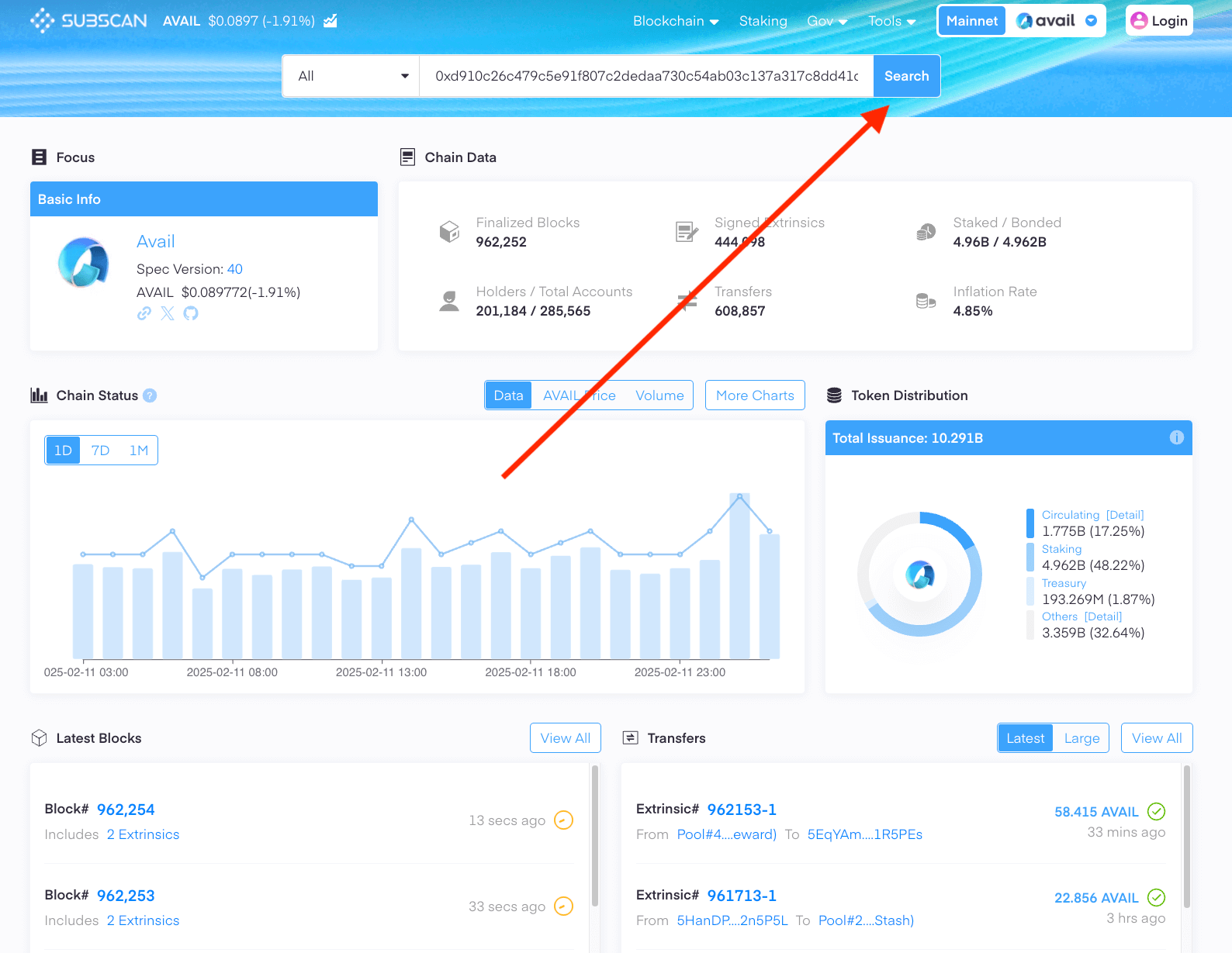 2. The Subscan explorer however, makes it possible to do so, since it queries from a dedicated indexer built on top of Avail to support this feature.