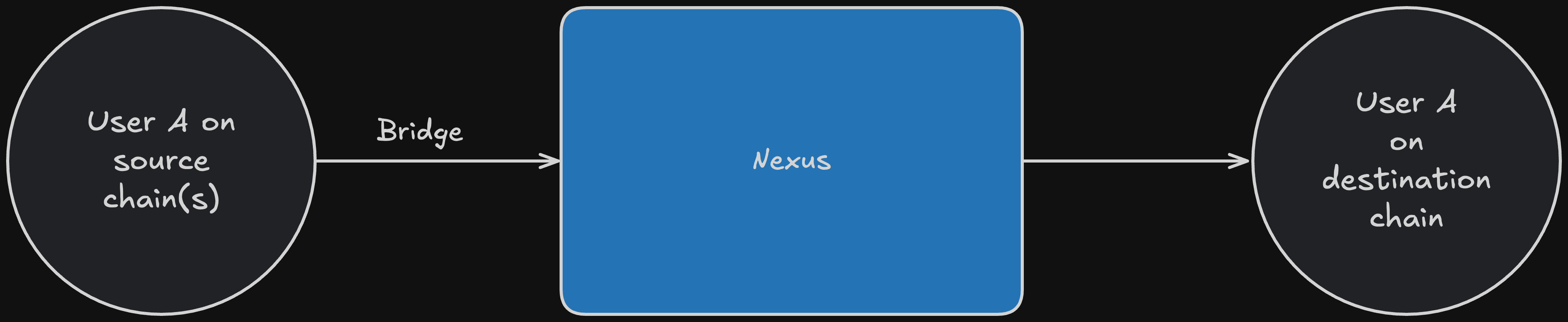 For users, this means they don’t have to do a separate bridge action to use a Liquid App (Nexus powered application), and just use the app as they would if they had liquidity onchain.