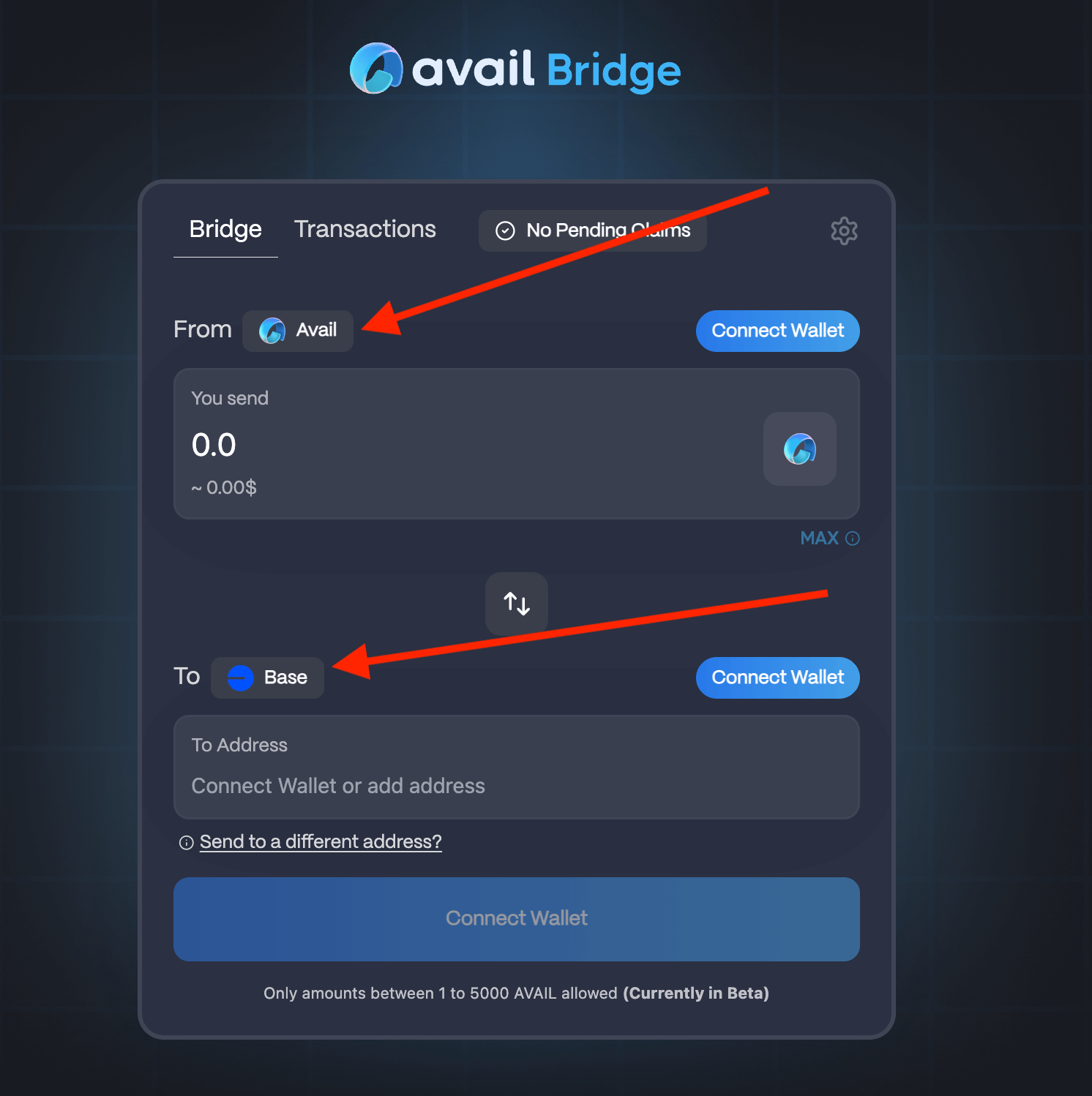 Base - Or vice-versa, if you want to bridge from Base to Avail.