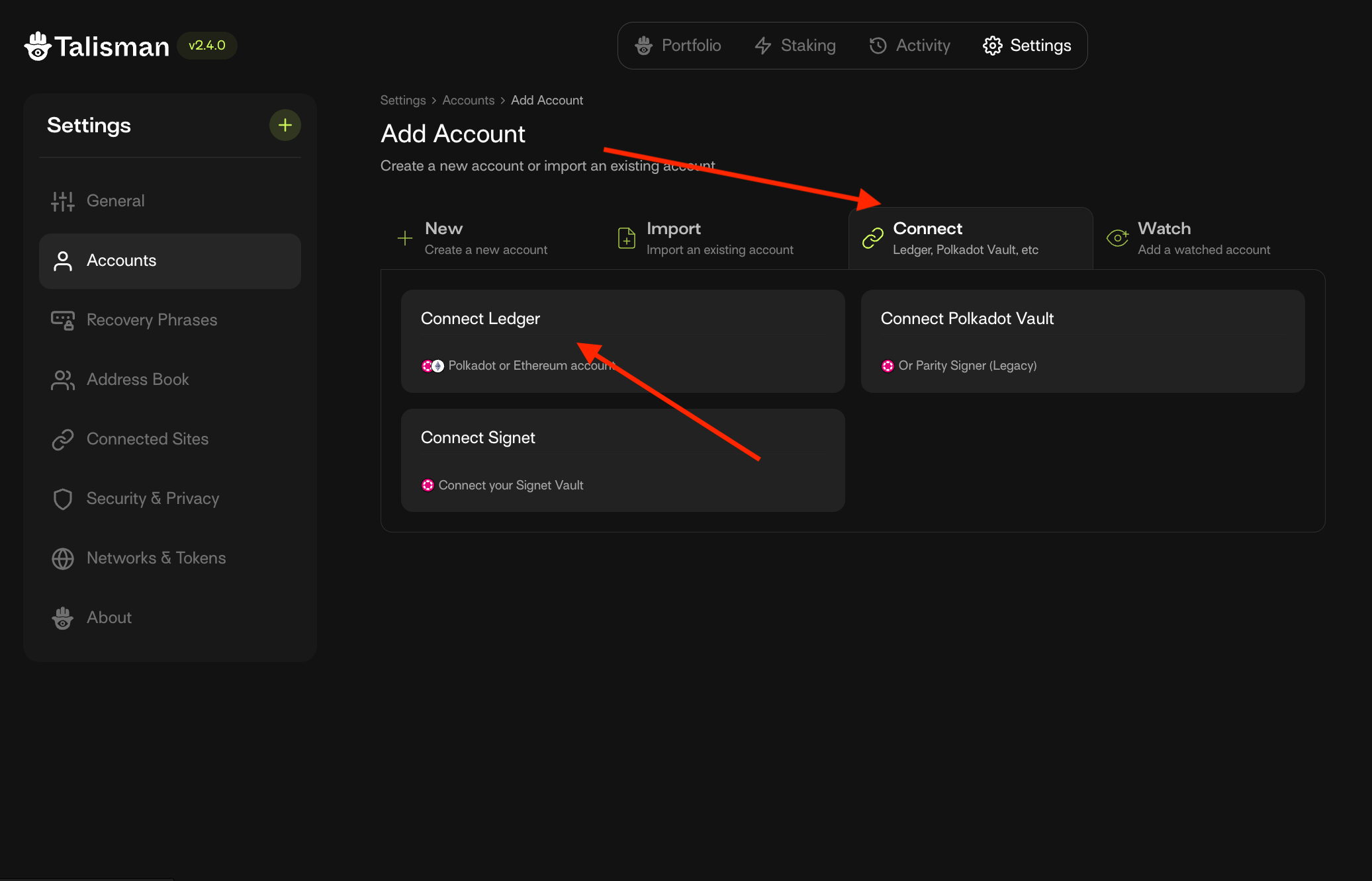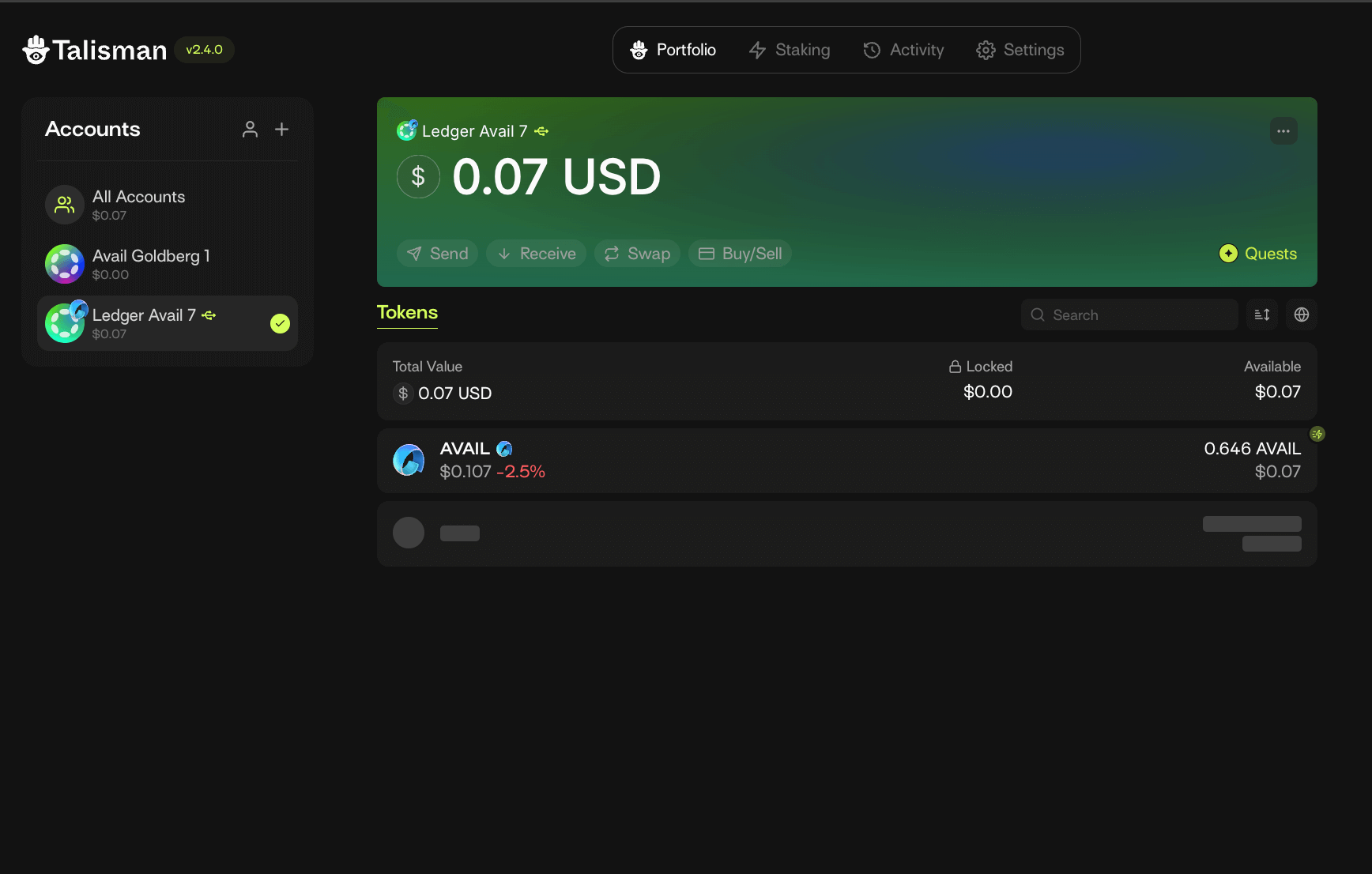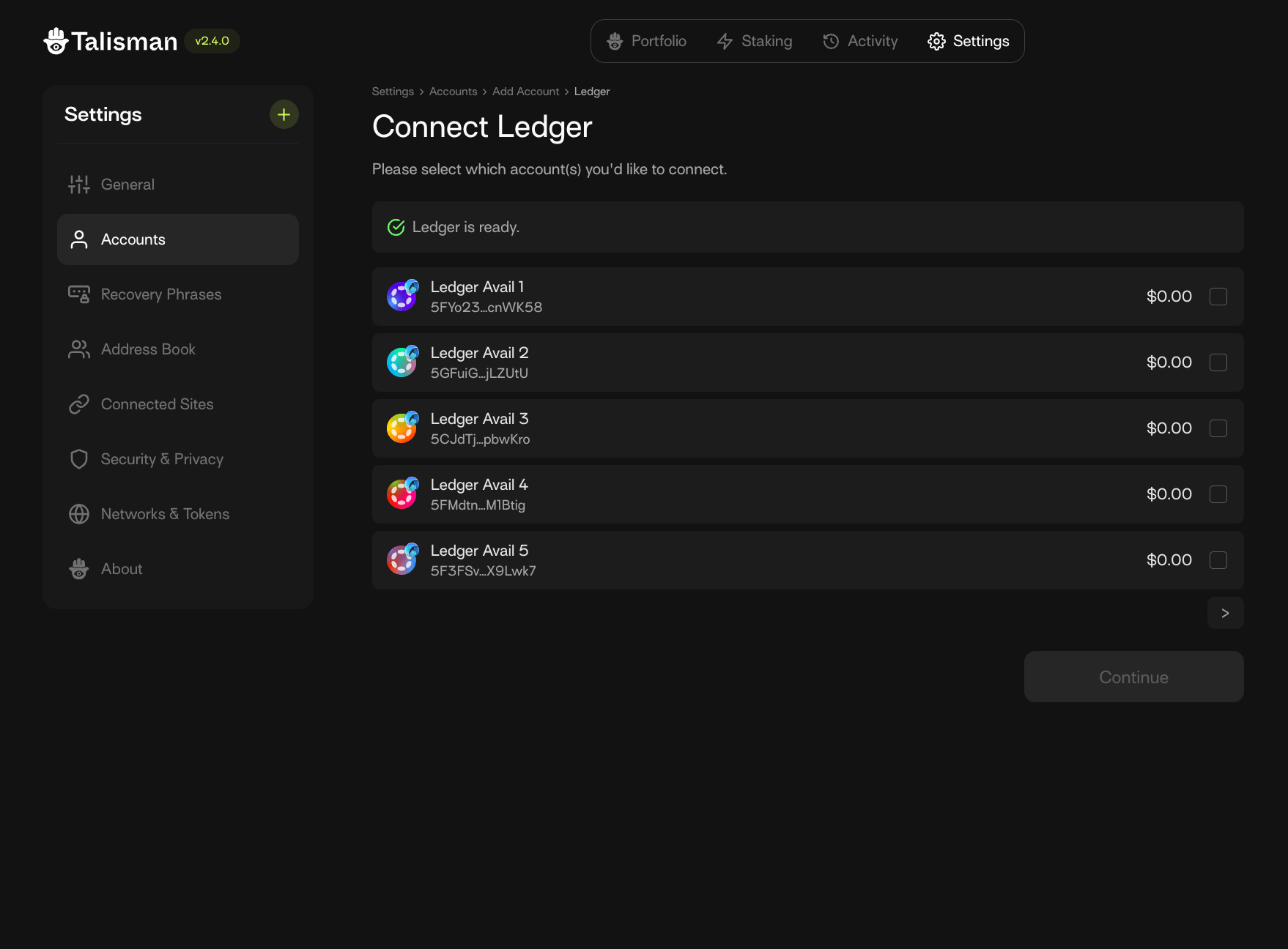 If you have set up your ledger device and want to use it through a dedicated Avail wallet, this section is for you. We have included instructions for connecting a ledger account with Subwallet & Talisman, but the process is similar for other wallets.