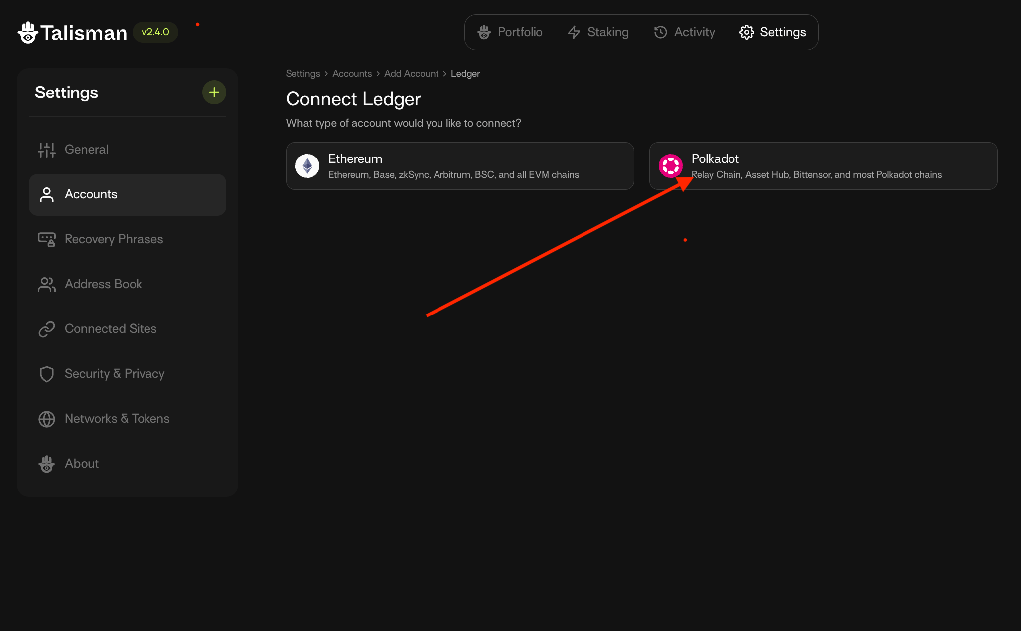 1. This is what the accounts tab should look like after you’ve derived a hardware account: